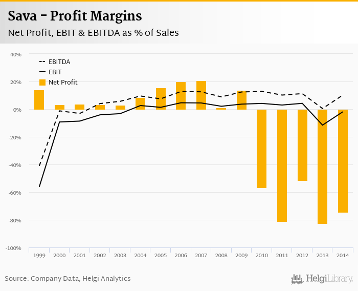 Sava made a net profit of EUR -47.0 mil with revenues of EUR 63.0 mil in 2014, up by 15.5% and down by 6.25%, respectively, compared to the previous year.