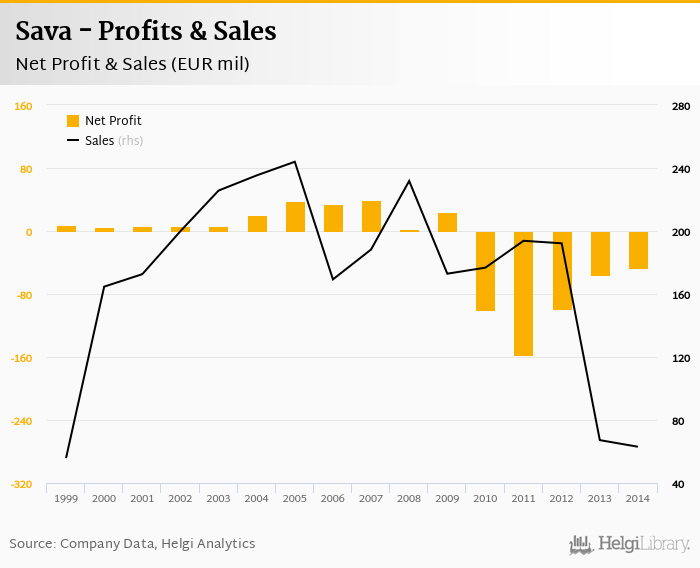 Sava made a net profit of EUR -47.0 mil in 2014, up 15.5% compared to the previous year. Total sales reached EUR 63.0 mil, which is down 6.25% when compared to the previous year.