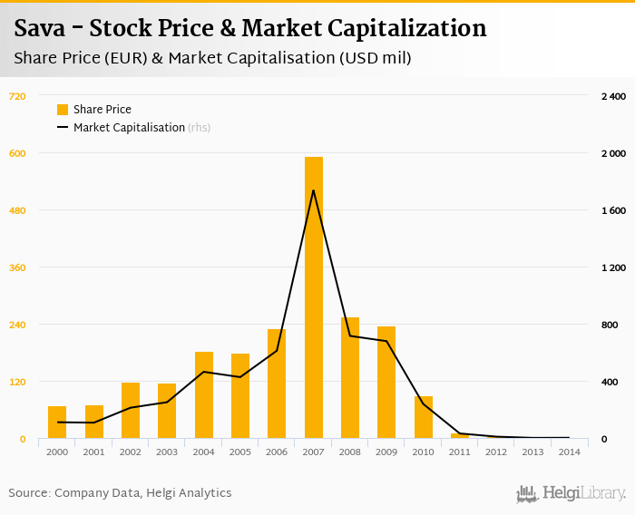 Historically, between 2000 and 2014, the Sava’s stock price reached a high of EUR 593 in 2007 and a low of EUR 0.200 in 2013.