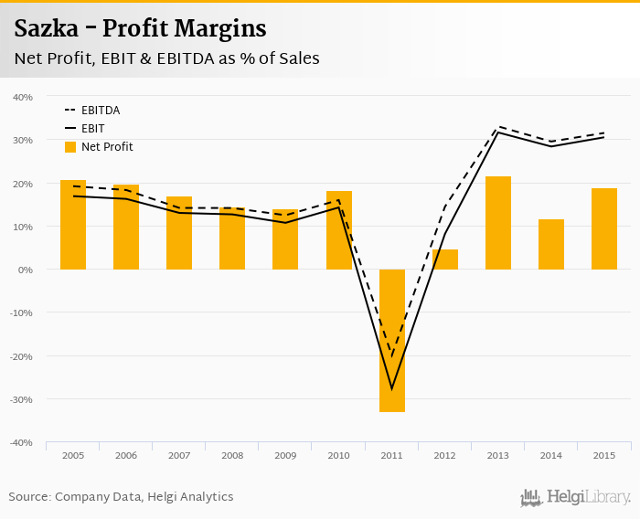 On the operating level, the EBITDA margin reached 31.4% and EBIT amounted to 30.4% of sales in 2015.