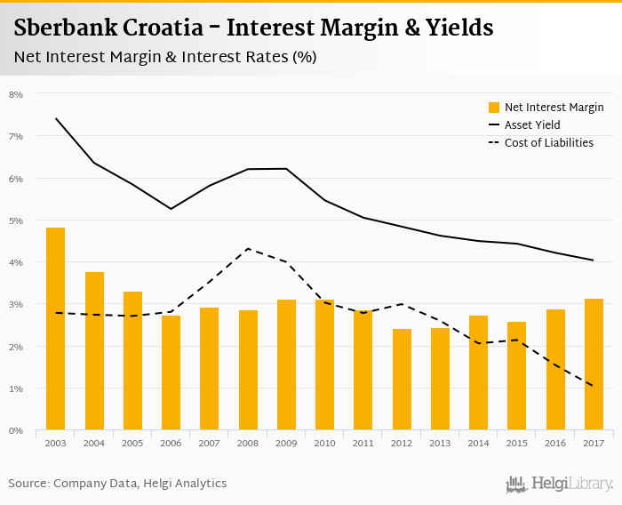 Sberbank Croatia's net interest margin amounted to 3.14% in 2017, up from 2.87% compared to the previous year.
