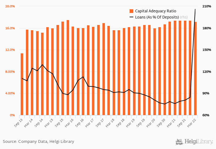 Bank's loan to deposit ratio reached 206% at the end of 1Q2022, up from 75.8% when compared to the same period of last year.