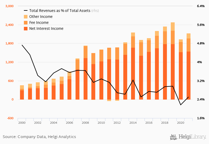 Bank's total revenues accounted for 2.51% total assets in 2021, up from 2.17% a year earlier.