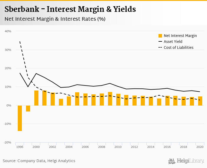 Comparing Sberbank with its closest peers, VTB Bank operated in 2020 with a net interest margin of 3.16% in 2020,.