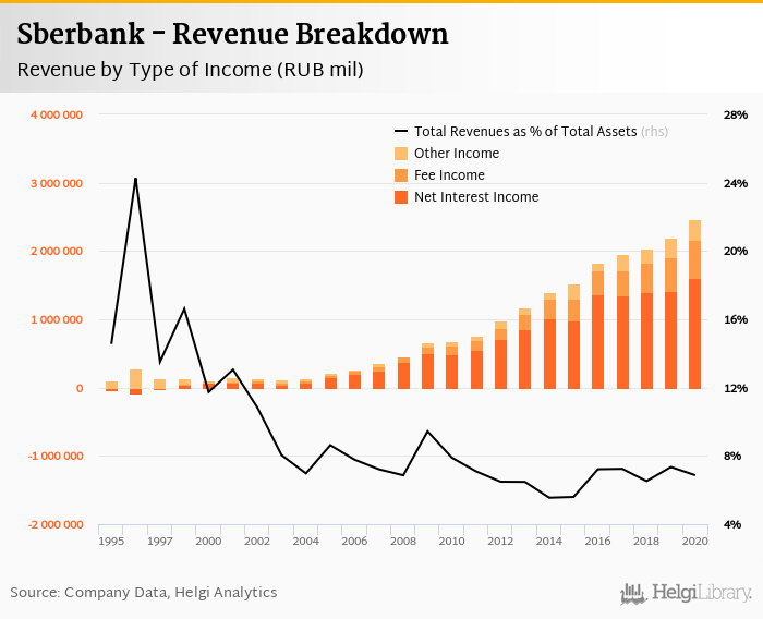 Comparing Sberbank with its closest peers, VTB Bank generated total revenues of 4.99% of assets in 2020,.