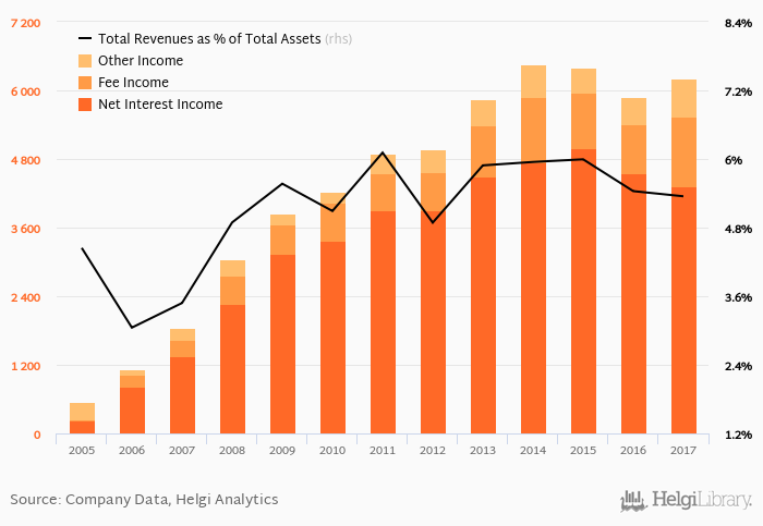 Bank's total revenues accounted for 5.35% total assets in 2017, down from 5.44% a year earlier.