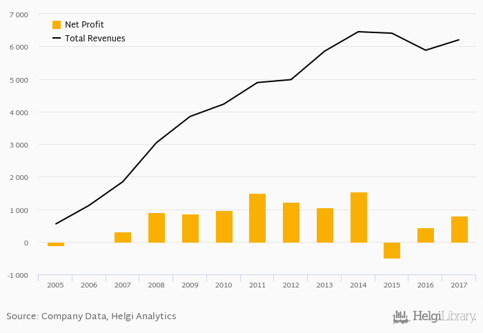 On the other hand, bank’s revenues amounted to an all time high of RSD 6,450 mil in 2014 and an all time low of RSD 543 mil in 2005. The average revenues in the last five years reached RSD 6,159 mil.