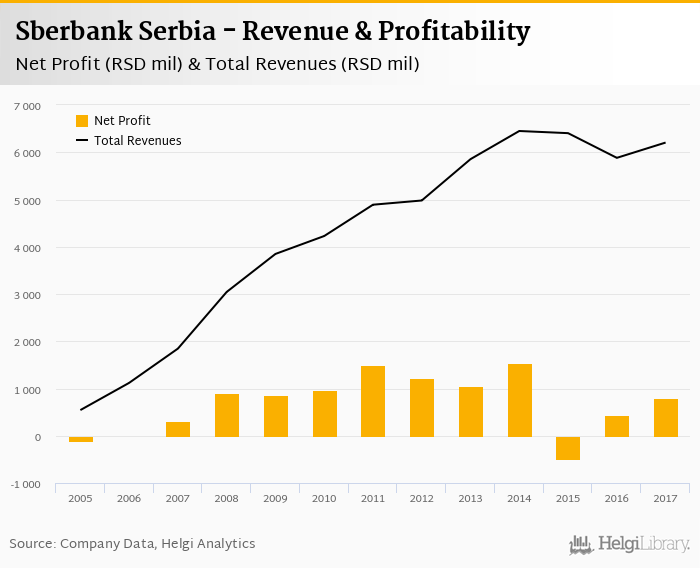 Comparing Sberbank Serbia with its closest peers, Komercijalna Banka Beograd generated a net profit of RSD 8,268 mil with revenues of RSD 20,035 mil in 2017, Bank Intesa Serbia netted RSD 11,848 mil (revenues of RSD 30,089 mil) and Raiffeisenbank Serbia announced a net profit of RSD 6,627 mil (revenues of RSD 15,542 mil).