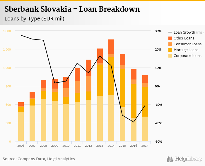 At the end of 2017, Sberbank Slovakia's loans accounted for 85.4% of total deposits and 69.8% of total assets.