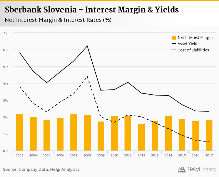 Sberbank Slovenia's net interest margin amounted to 1.86% in 2017, up from 1.79% compared to the previous year.