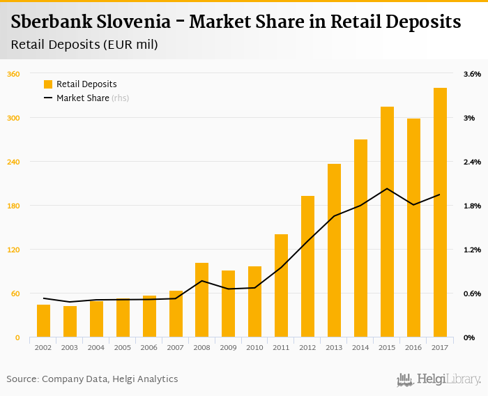 Sberbank Slovenia's retail deposits reached EUR 341 mil in 2017, up 14.0% compared to the previous year.