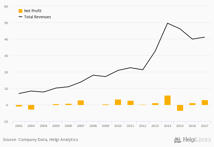 On the other hand, bank’s revenues amounted to an all time high of EUR 49.6 mil in 2014 and an all time low of EUR 6.77 mil in 2002. The average revenues in the last five years reached EUR 41.9 mil.