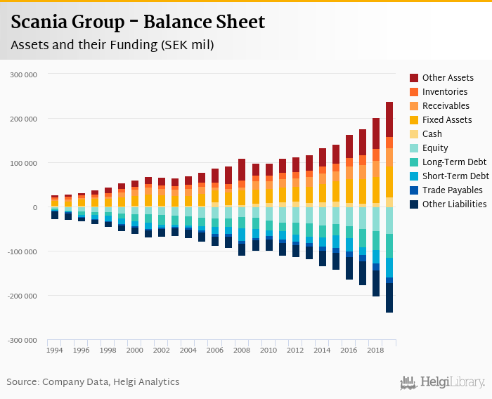 Scania Group's total assets reached SEK 238,323 mil at the end of 2019, up 18.6% compared to the previous year.