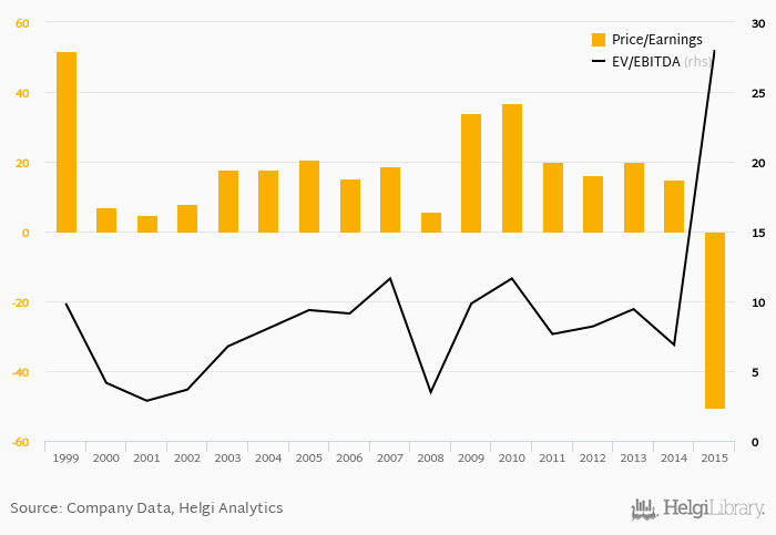 At the end of 2015, the firm traded at price to earnings of -50.5x. Over the last five years, this multiple achieved a high of 20.1x in 2013 and a low of -50.5x in 2015 with an average of 4.16x.