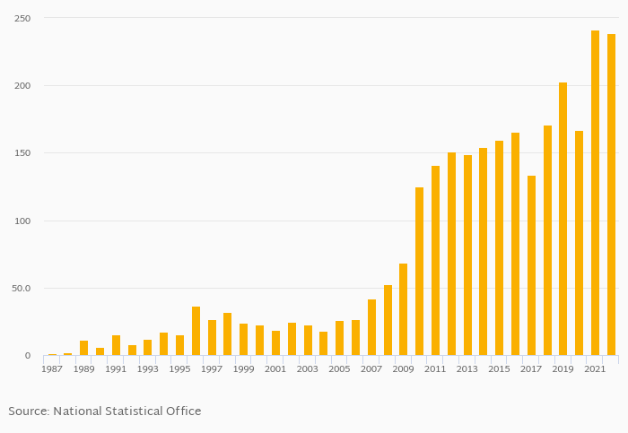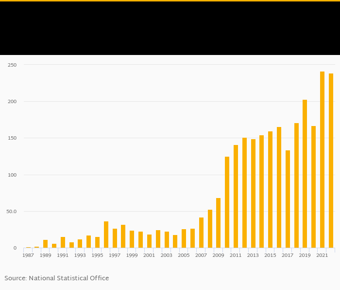 | Bulgaria | 2,544 | 2,964 | 3,375 | 4,302 | 4,559 | |||||||||||||||||