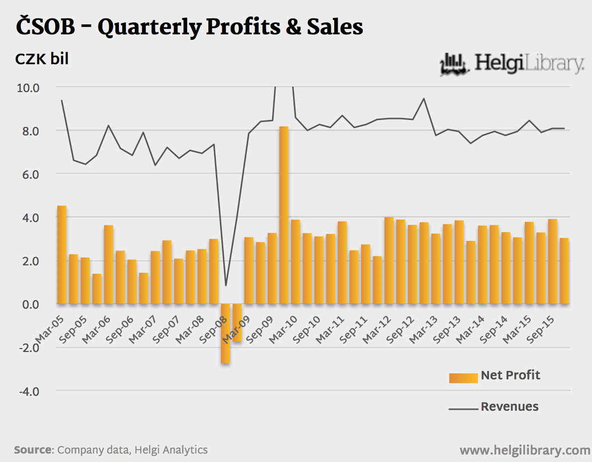 ČSOB - Quarterly Profits & Sales (Mar05-Dec15)