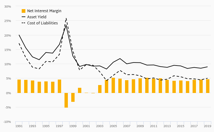 Who Achieved the Highest Interest Margin Among Indonesian Financials in 2019?