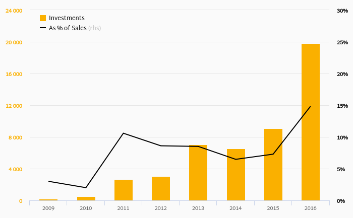 How Much Does Energeticky a prumyslovy holding Invests?