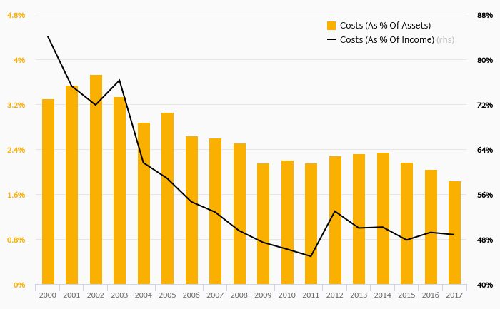 Who Was the Most Cost Efficient Among Intesa SanPaolo New Europe in 2017?