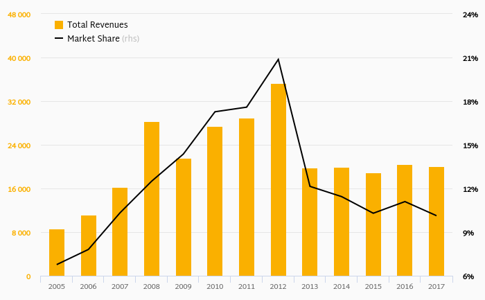 Komercijalna Banka Beograd - Market Share in Bank Revenues
