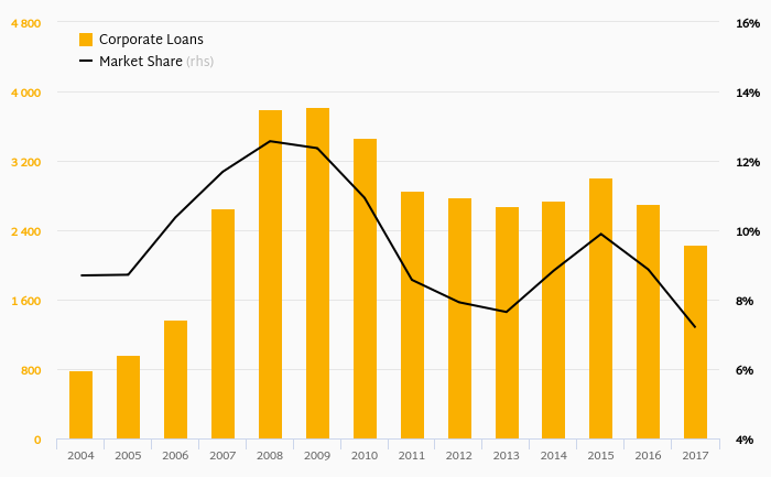 United Bulgarian Bank - Market Share in Corporate Loans