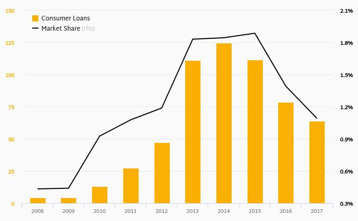 Otkritie Financial Corporation Bank - Market Share in Consumer Loans