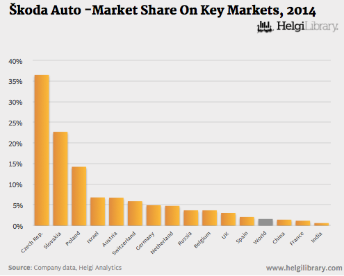 Skoda Auto - Market Share On Key Markets (2014)