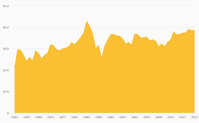 Sugar Consumption Per Capita rose 0.547% to 38.6 kg in Dominican Republic in 2021