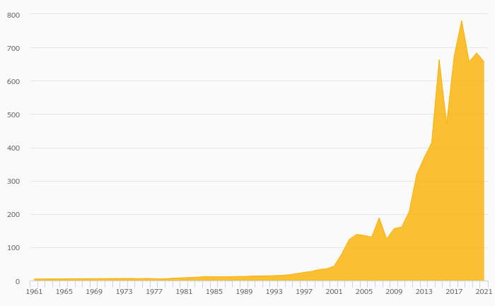 Banana Consumption (Total) fell 3.95% to 657 kt in Laos in 2021