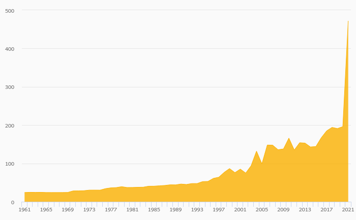Banana Consumption (Total) rose 141% to 472 kt in Mali in 2021