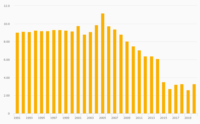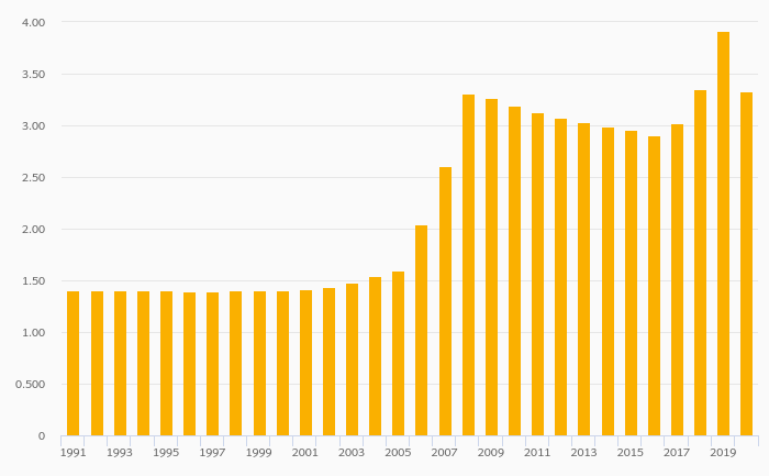 Employers, Male (As % of Employment) rose 25.9% to 3.29% in Cyprus in 2020