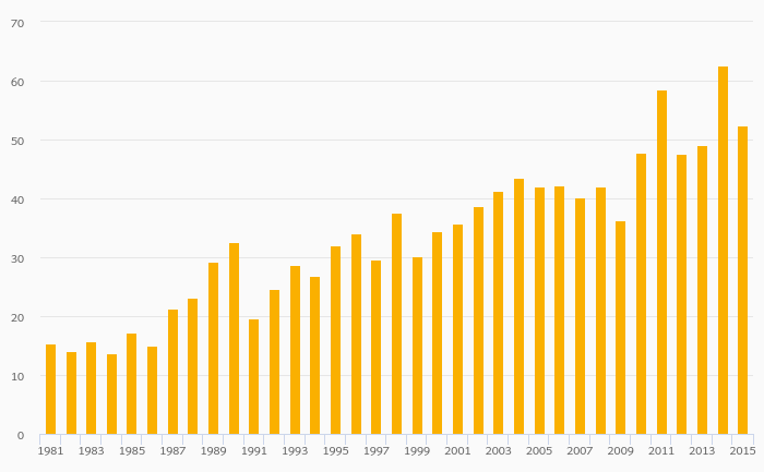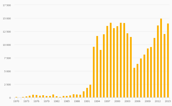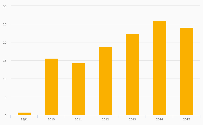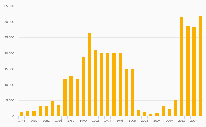 Graphite Production rose 12.3% to 32,000 tonnes in Turkey in 2015