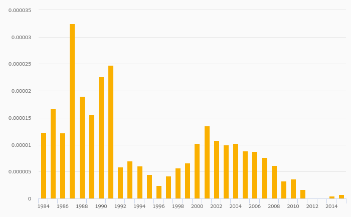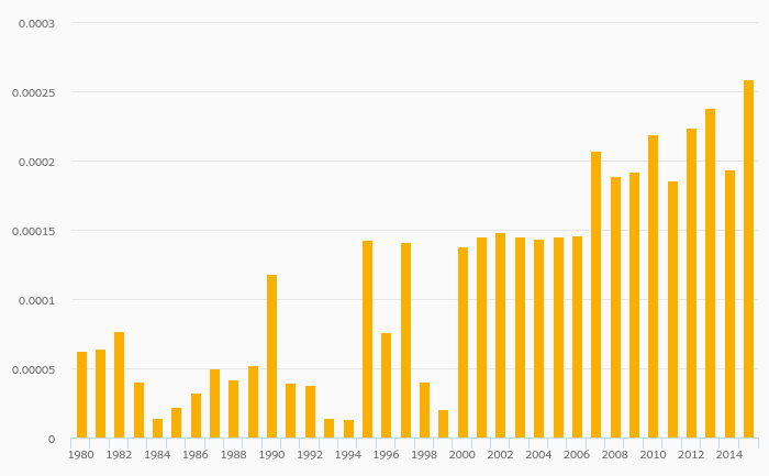 Coal Consumption (As % of Worldwide Consumption) rose 55.4% to < 0.001% in Cyprus in 2015