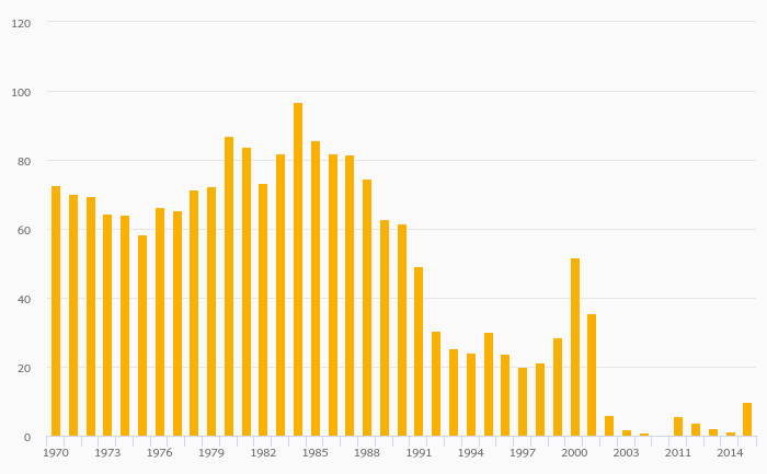 Gold (Mine) Production rose 102% to 87.0 kg in Sierra Leone in 2015