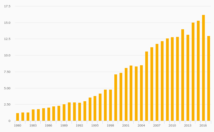 Proved Reserves of Crude Oil fell 19.7% to 13.0 bil barrels in Brazil in 2017