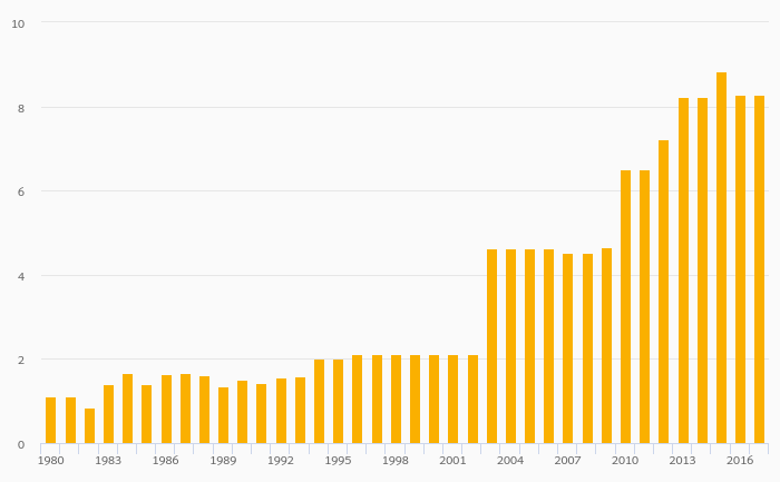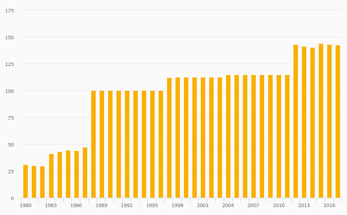 Proved Reserves of Crude Oil rose 0.552% to 158 bil barrels in Iran in 2017