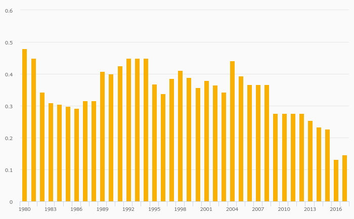 Proved Reserves of Crude Oil fell 0.396% to 143 bil barrels in Iraq in 2017