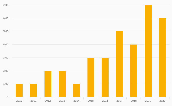 Secure Internet Servers rose 6.63% to 6,677 in Uruguay in 2020