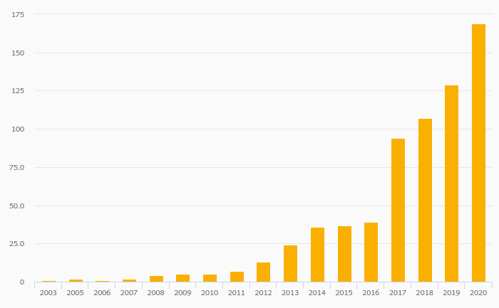 Secure Internet Servers rose 140% to 286 in Turkmenistan in 2020