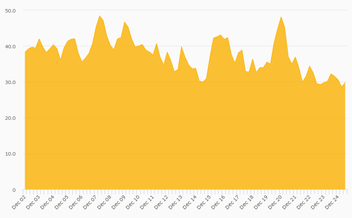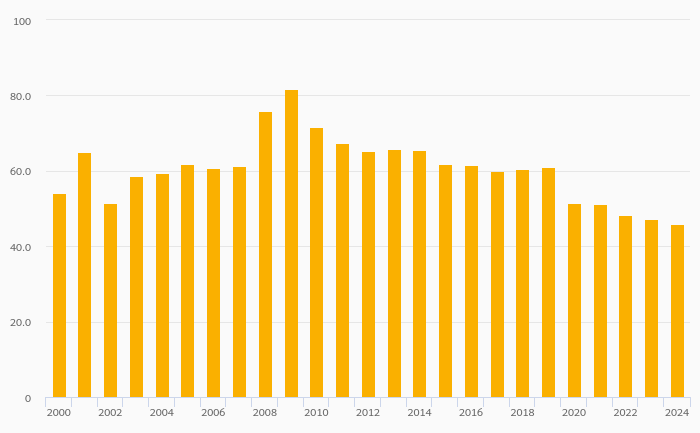 Bank Pre-Tax Return on Equity (Pre-Tax ROE) fell 4.91% to 25.2% in Georgia in 2024