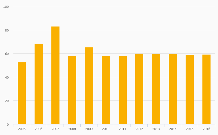 Energy Dependence (Natural Gas) rose 8.59% to 78.4% in Poland in 2016