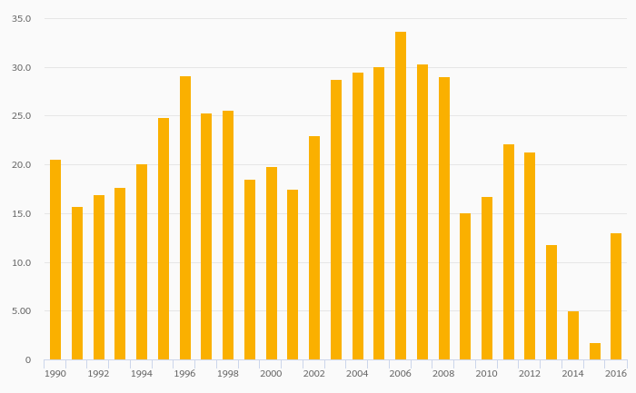 Energy Dependence (Natural Gas) rose 1.71% to -34.5% in Netherlands in 2016