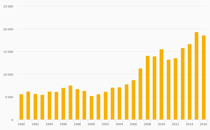 Biofuels Production (Tonnes of Oil Equivalent) fell 4.04% to 18,552 kt in Brazil in 2016