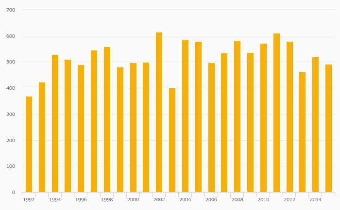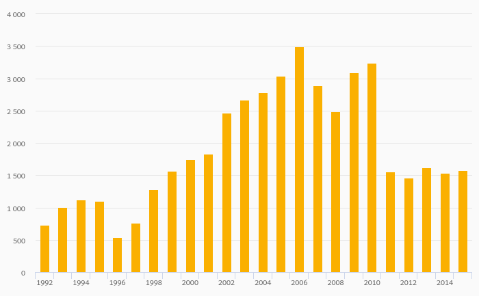 Cereal Production fell 0.352% to 5,003 kt in Sweden in 2015