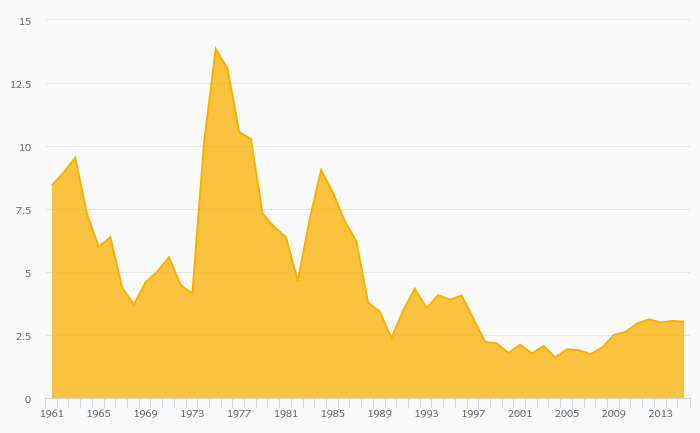 Agriculture, Value Added (As % of GDP) fell 4.17% to 8.88% in Turkey in 2015
