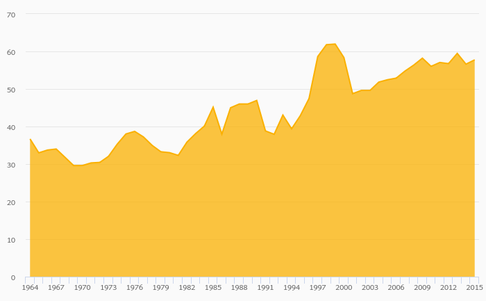 Agriculture, Value Added (As % of GDP) rose 2.03% to 57.8% in Sierra Leone in 2015