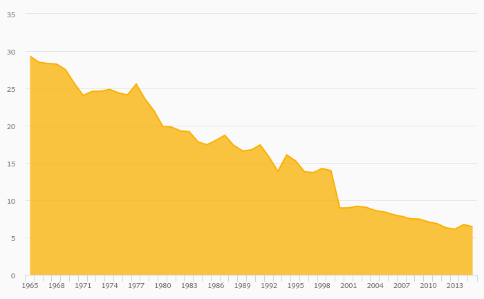 Agriculture, Value Added (As % of GDP) fell 4.83% to 6.43% in Colombia in 2015