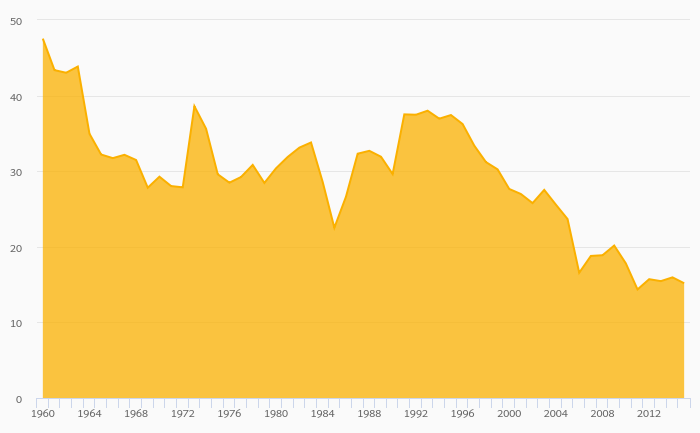Agriculture, Value Added (As % of GDP) fell 4.89% to 15.2% in Mauritania in 2015