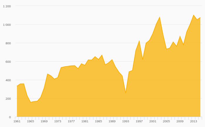 Cereal Production rose 2.30% to 1,075 kt in Cuba in 2015