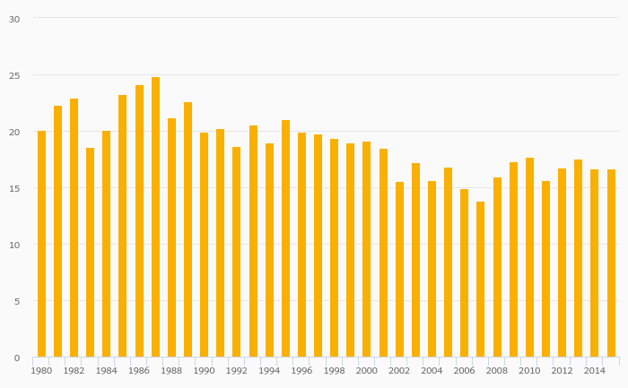 Agriculture, Value Added (As % of GDP) fell 0.331% to 16.6% in Senegal in 2015